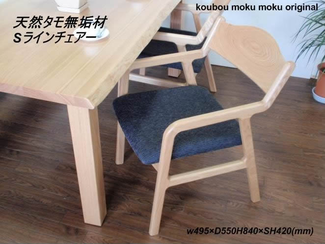 HOME > PURODUCTS > チェアー ダイニングチェアー 椅子 イス Sライン タモ無垢板チェア 座面布張り
